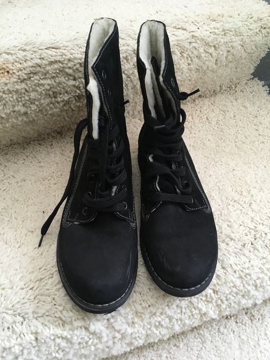 Ghete negre, piele intoarsa, imblanite, marimea 40