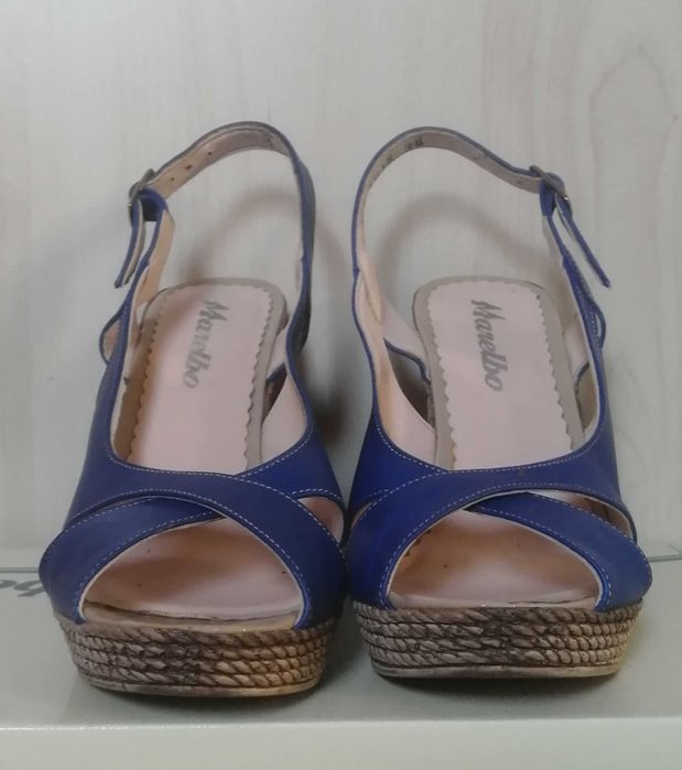 Sandale piele naturalacu platforma numarul 36 albastre, turcoaz, bleu