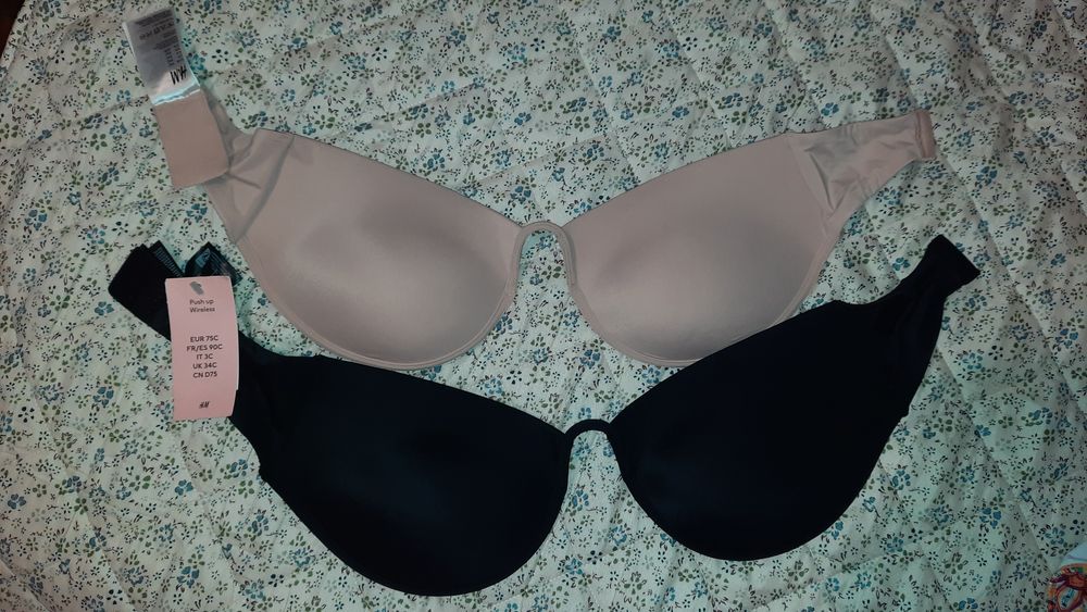 Set 2 sutiene H&M fara bretele, push-up,75 C, bej si negru