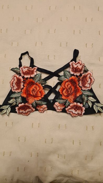 Sutien cu flori colorate brodate