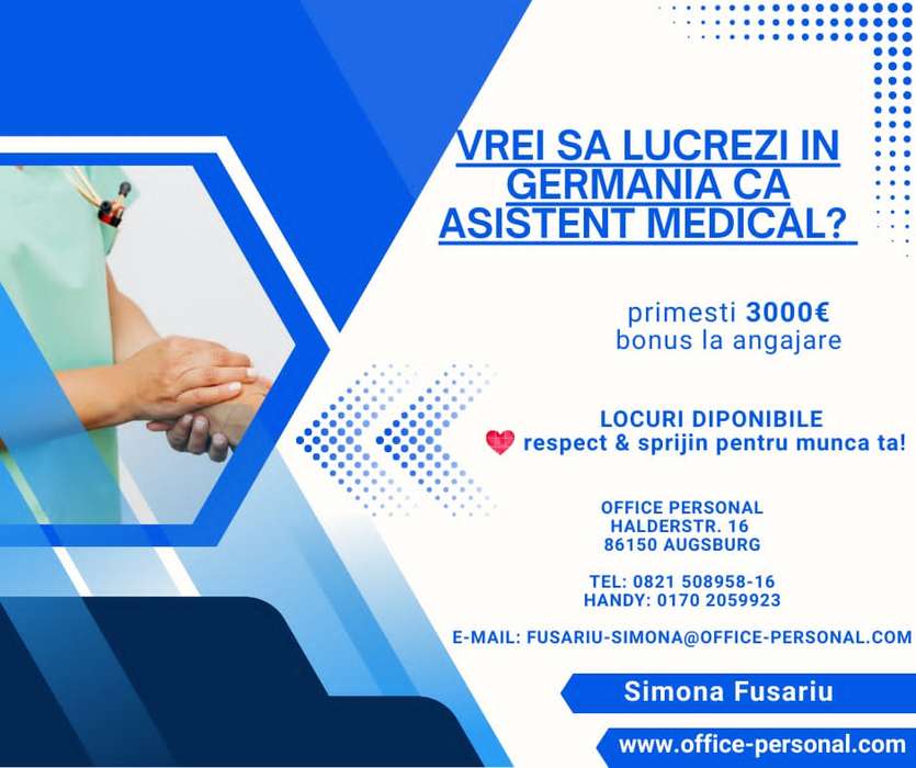 Căutăm asistenți medicali / îngrijitori pentru misiuni în Germania.