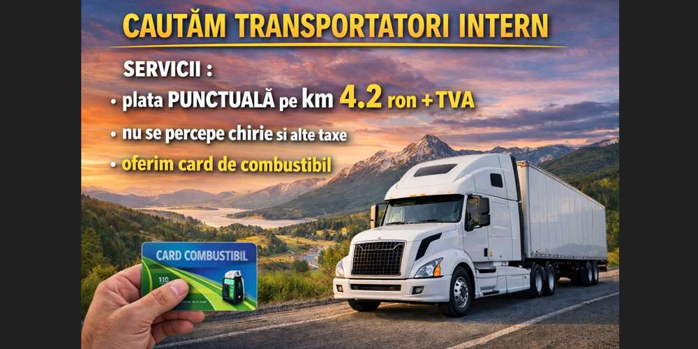 Suntem o companie serioasă, activă în transportul intern și internațional, și dorim să colaborăm cu tractioniști profesioniști pentru extinderea flotei.