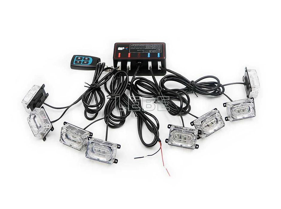 Stroboscoape auto LED grila 2x8 rosu albastru wireless