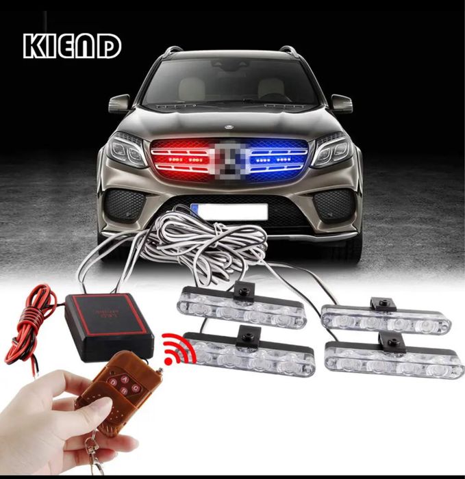 Stroboscoape auto LED grila politie rosu albastru galben - wireless