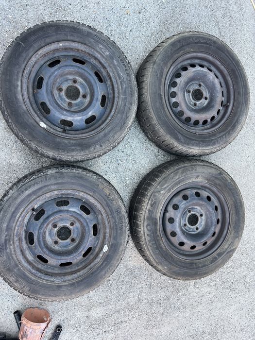 Vând  cauciucuri R14 cu jante de tablă și capace,m+s,5*100