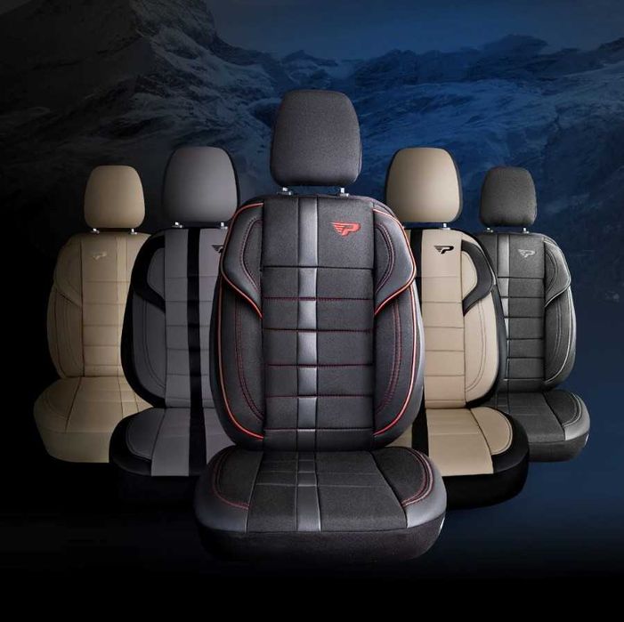 SET HUSE SCAUNE AUTO fata-spate  textil + piele PREMIUM LUXURY