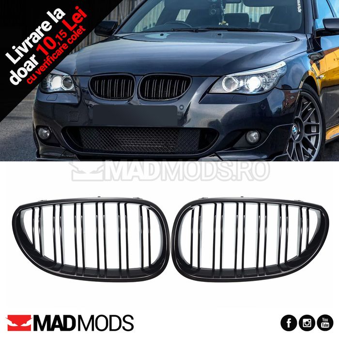 Set grile duble M BMW Seria 5 E60 E61 M5 2003-2010, Negru Lucios