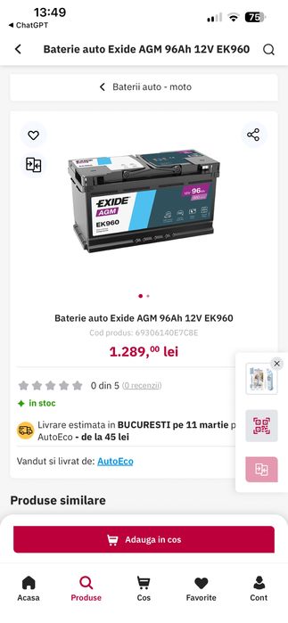 Baterie,baterii auto intre 90a si 100amperi,AGM sau simple