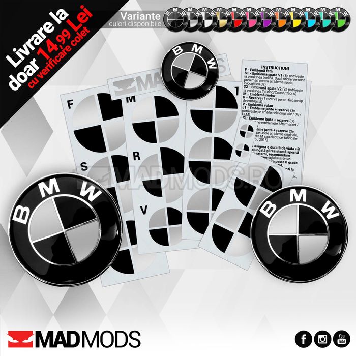 Set Stickere Embleme Negru cu Gri BMW Seria 1 2 3 4 5 6 7 8 X i M