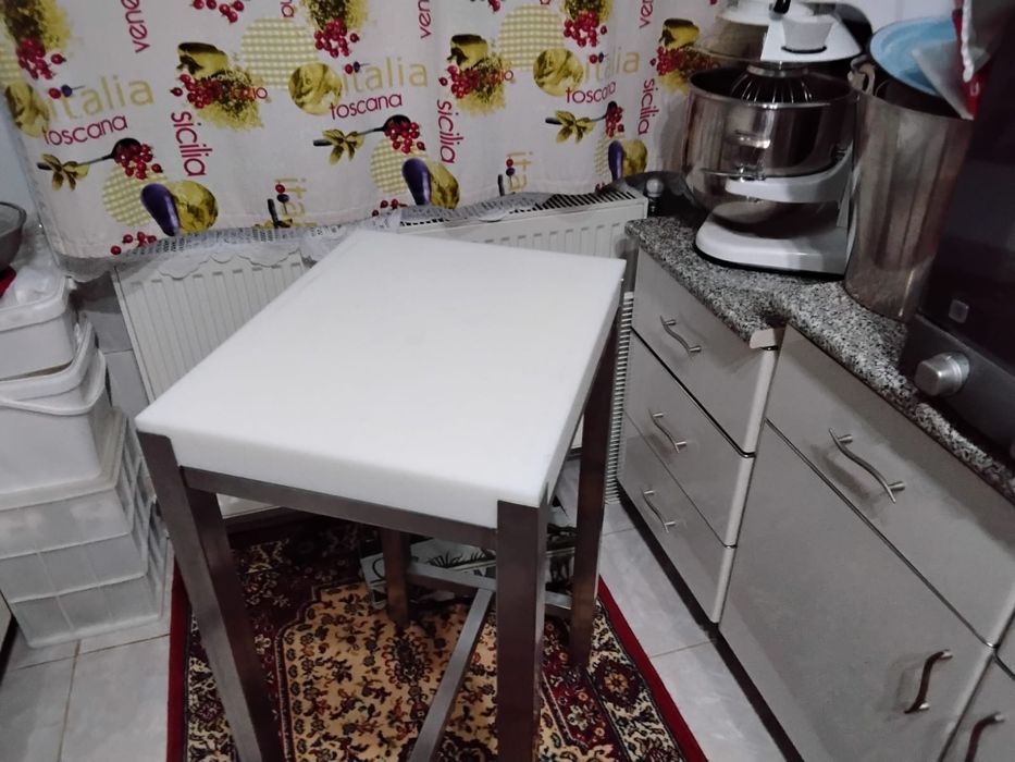 Vînd butuc inox cu blat din polietilenă alb 50 cm ..40 ..cm