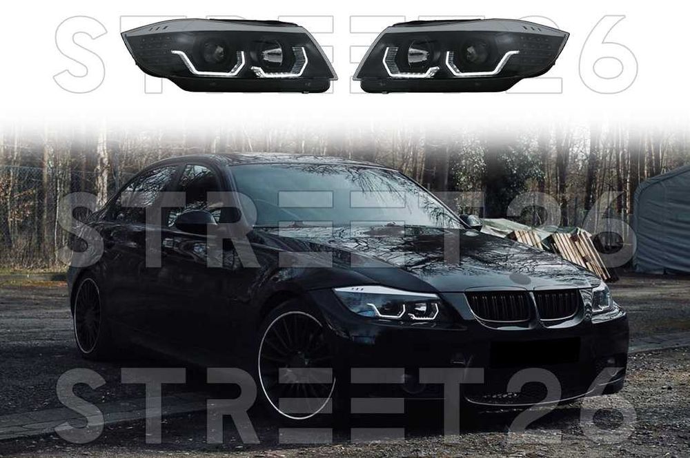 Faruri BMW E90 E91 Seria 3 2005-2008 Angel Eyes Negru DEPO CALITATEA 1