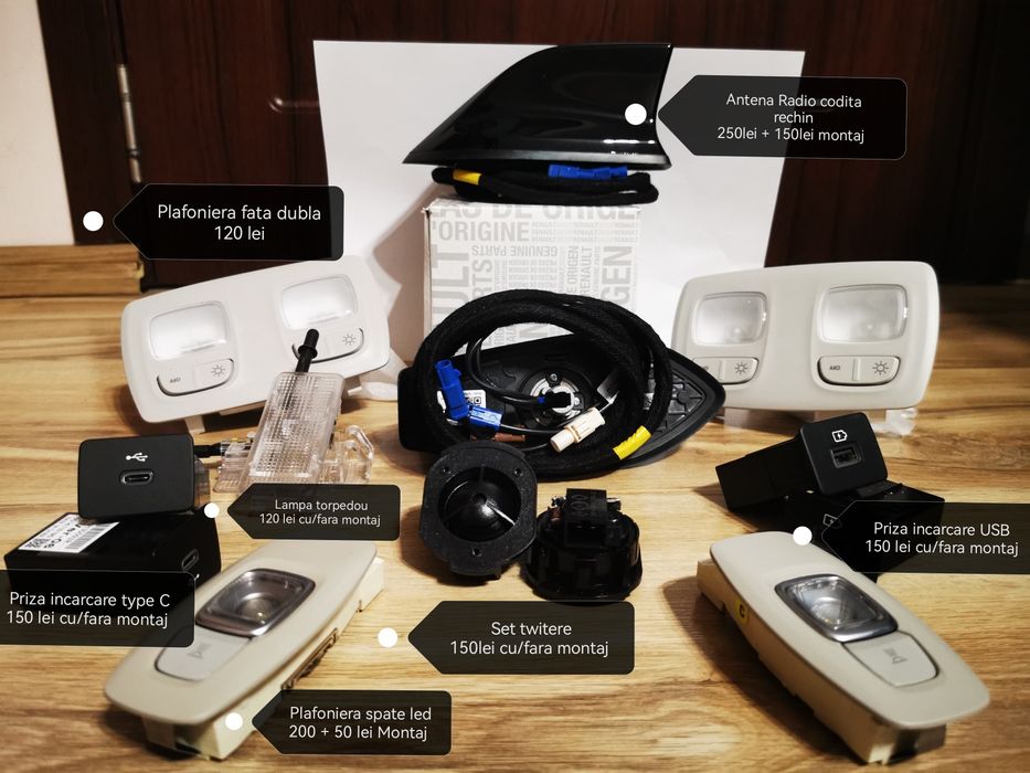 Priza USB, Lampă torpedou, Antena radio codita, plafoniere, twitere