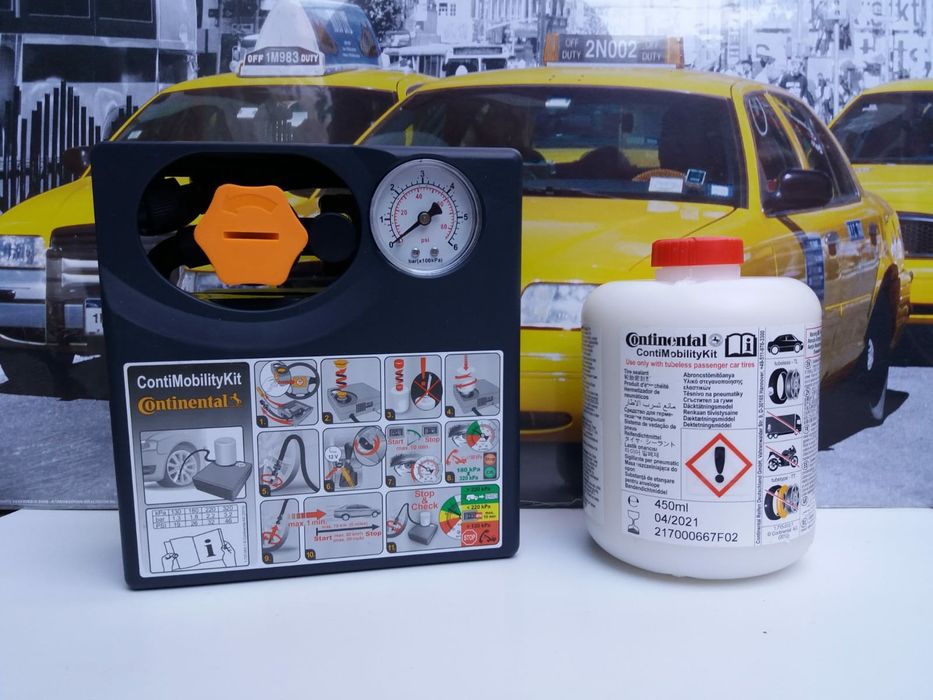 Kit pana umflat roti auto compresor +solutie original Continental 180W