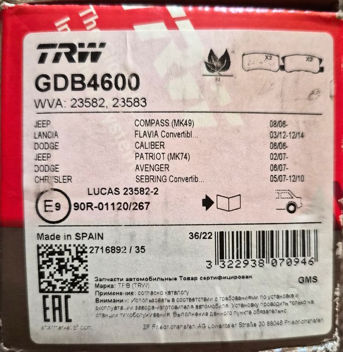 Vanzare placute frana puntea spate noi
