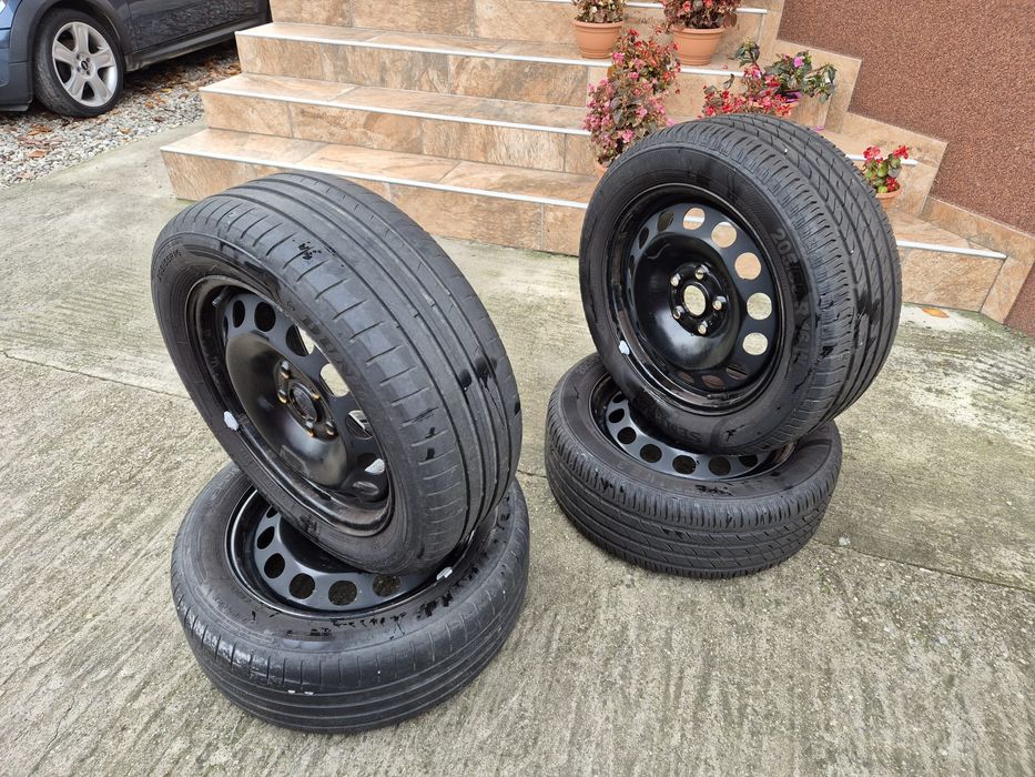 Set 4 anvelope mixte Continental 205/55 R16 + jante tabla cu capace