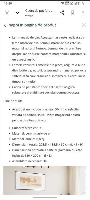 cadru pat în Dormitor