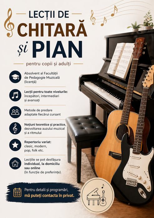 Lecții de Chitară și Pian – pentru copii și adulți