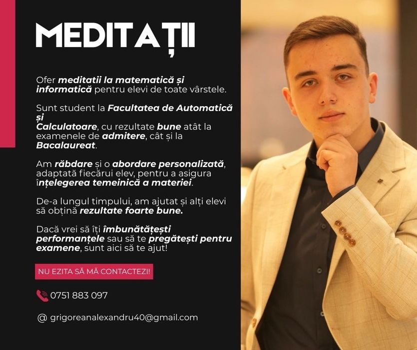 Intra pe OLX.ro si vezi toate anunturile din categoria de Cursuri - Meditatii in Handresti ⭐ Anunturi gratuite de Cursuri - Meditatii pe OLX.ro