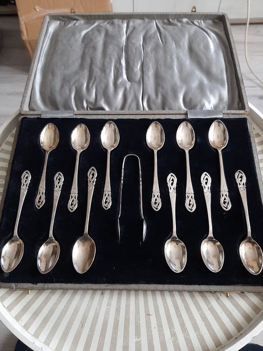 Lingurițe de ceai placate cu argint, în ambalajul original.