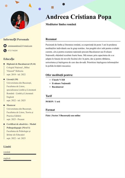Meditatii si cursuri particulare pentru diverse materii