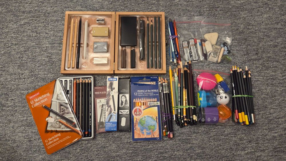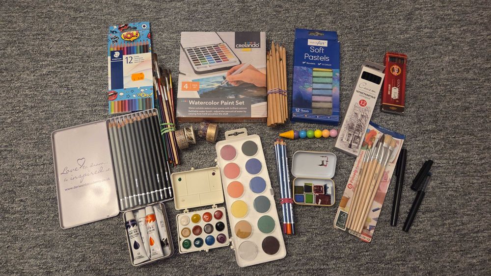 Set piese pentru desen si pictura cu creioane, carioci, acuarele