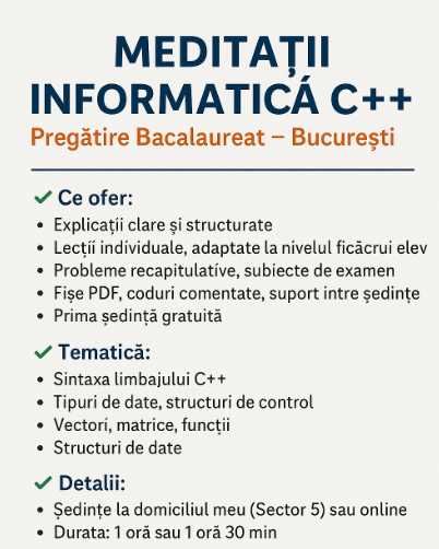 Meditații Informatică C++ Bacalaureat – Online sau Sector 5 București