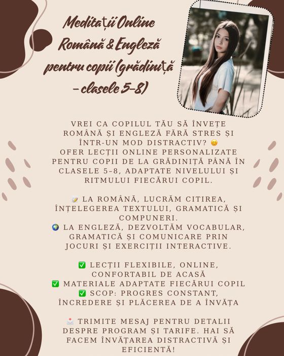 Intra pe OLX.ro si vezi toate anunturile din categoria de Cursuri - Meditatii in Tatarca ⭐ Anunturi gratuite de Cursuri - Meditatii pe OLX.ro