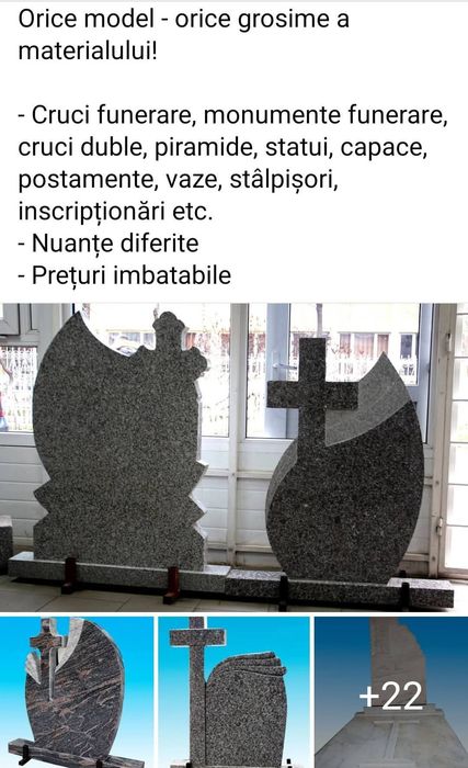 Cautarea pe olx.ro este o modalitate usoara de a gasi o firma de servicii funerare complete, care sa organizeze tot ceea ce tine de astfel de momente nu doar nefericite, ci si epuizante. Meniul nostru te va ghida catre firme ce isi ofera serviciile la preturi pentru toate buzunarele si care se ocupa de tot ceea ce presupun funeraliile, incluzand si servicii de repatriere sau de incinerare. Contacteaza, dupa caz, servicii funerare non-stop sau firme specializate care pot asigura doar transportul atunci cand este nevoie. Totodata, anunturile din aceasta categorie vizeaza realizarea de cruci si monumente, precum si gravura sau inscriptionarea acestora. Poti contacta servicii de monumente funerare de incredere.