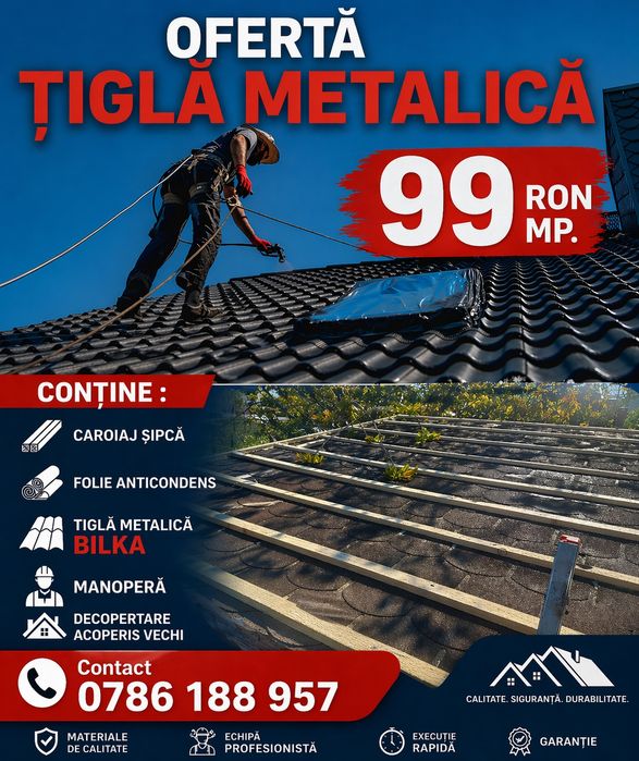 Montaj acoperis tigla metalica jgheaburi burlane reparații