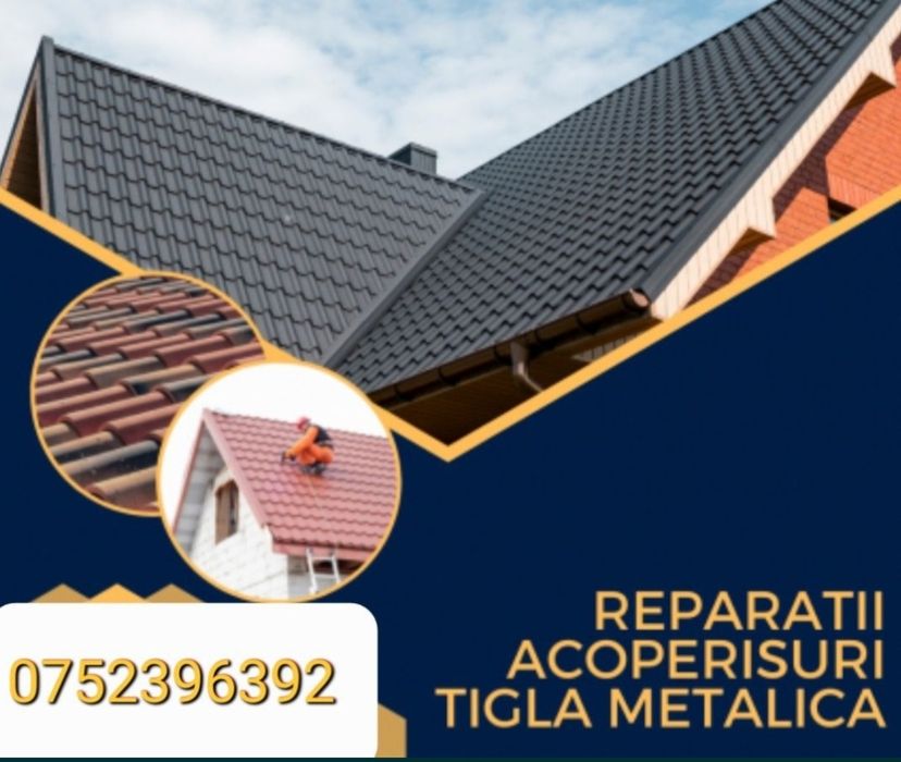 Montaj acoperis tigla metalica si ceramica reparatii de urgență etca