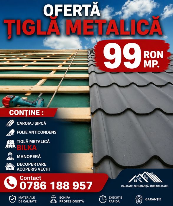 Execută acoperișe orice tip țiglă ceramică țiglă metalică bilka
