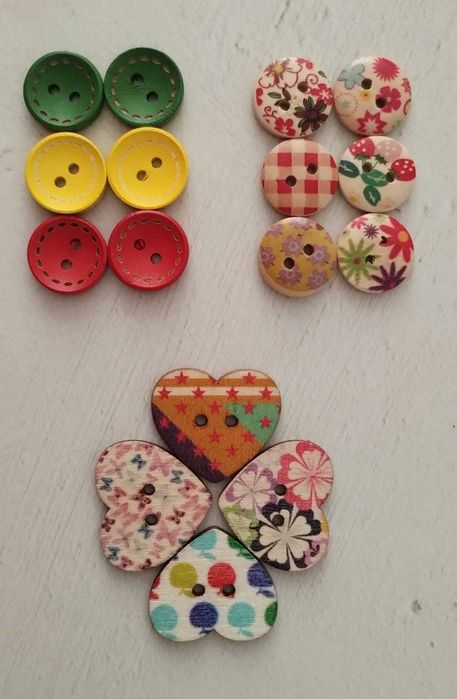 Nasturi lemn decorativi colorați pt lucru manual, craft, haine copii