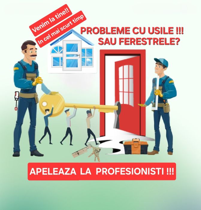 Deblocari usi Montaj si reparatii usi exterioare Montaj si reparatii usi interioare Reglaje - inlocuire feronerie Reparatii termopane Rulouri - jaluzele exterioare