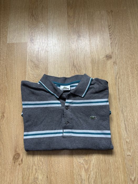 Lacoste Long Sleeve Polo - Striped Grey/Teal