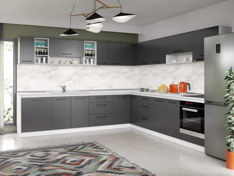 Set Mobila Bucatarie Colt Mina Dual 280*280 Gri Antracit/Alb C118