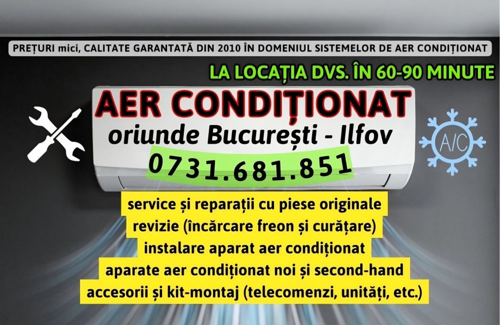 AER CONDITIONAT:reparatii,incarcare freon,service inclusiv weekend