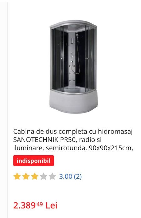 Cabină duș cu hidromasaj, radio și iluminare, nouă, sigilată