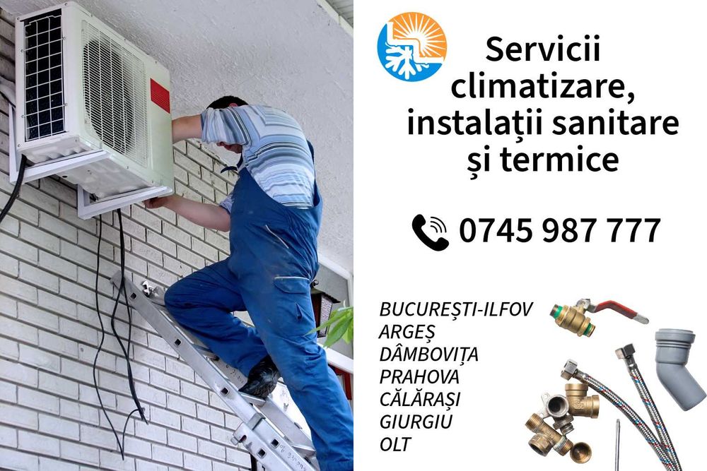 Montaj calorifere Montaj aer conditionat Pompe de caldura Canalizari Centrale - boilere pe lemn Boilere electrice Montaj obiecte sanitare Verificari centrale termice Reparatii centrale termice Reductoare apa Hidrofoare Incarcare cu freon aer conditionat Montaj - inlocuire baterii chiuveta Reparatii tevi Montaj centrale termice Incalzire in pardoseala