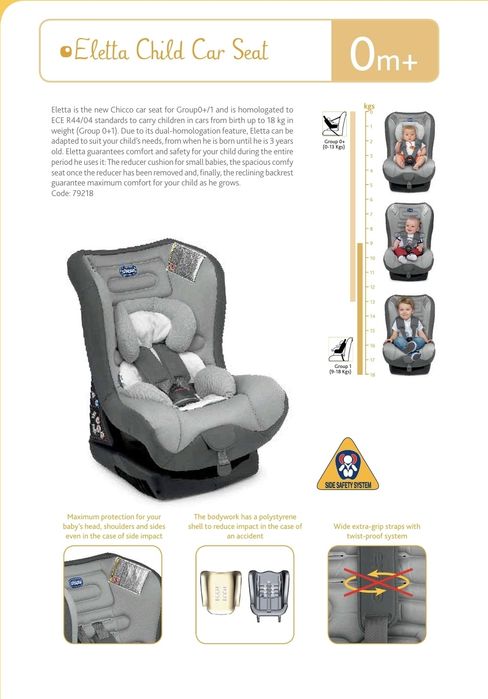 Scaun auto Cicco Eletta, 0 - 18 kg ( 0 - 3 ani) si bonus Cărucior Ma