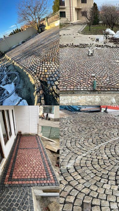 Montam pavaje, piatra cubica, gazon natural, beton elicoperizat.
