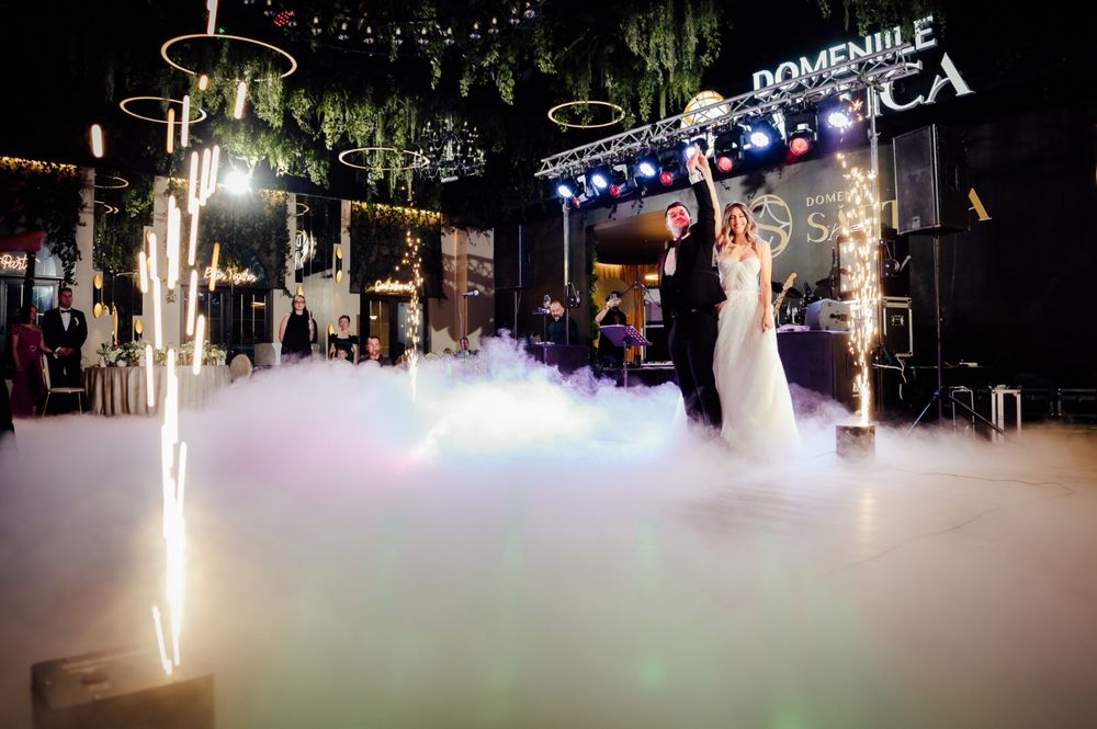 Fum greu, gheata carbonica, artificii dansul mirilor.