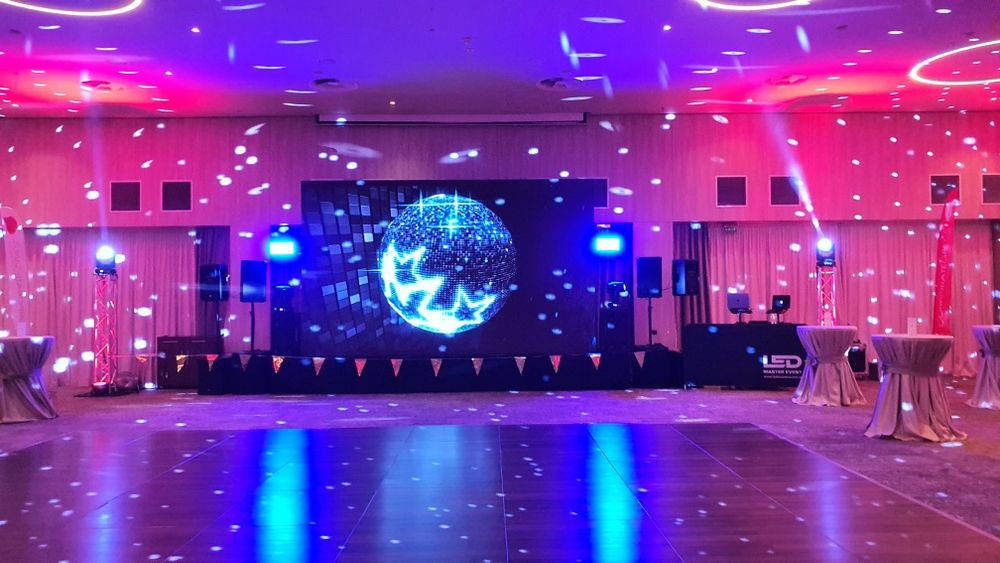 Dj-MC, scena, podium, ecran led, sonorizare, schela de lumini, glob