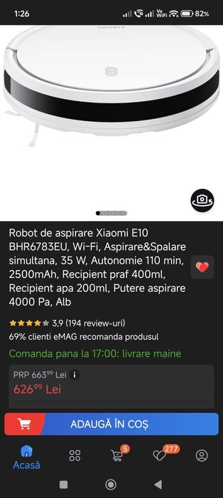 Robot de aspirare Xiaomi E10 Aspirare&Spalare simultana 35 W Nou