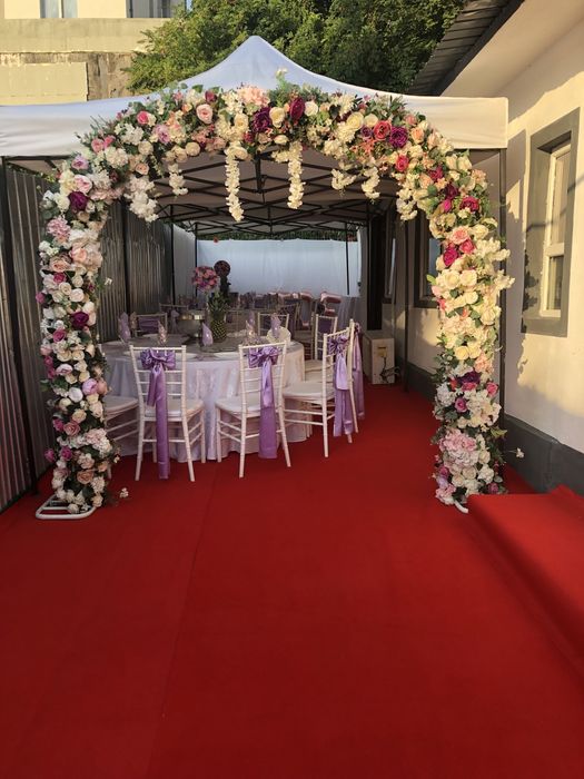 | Corturi, mese, scaune, veselă, pahare