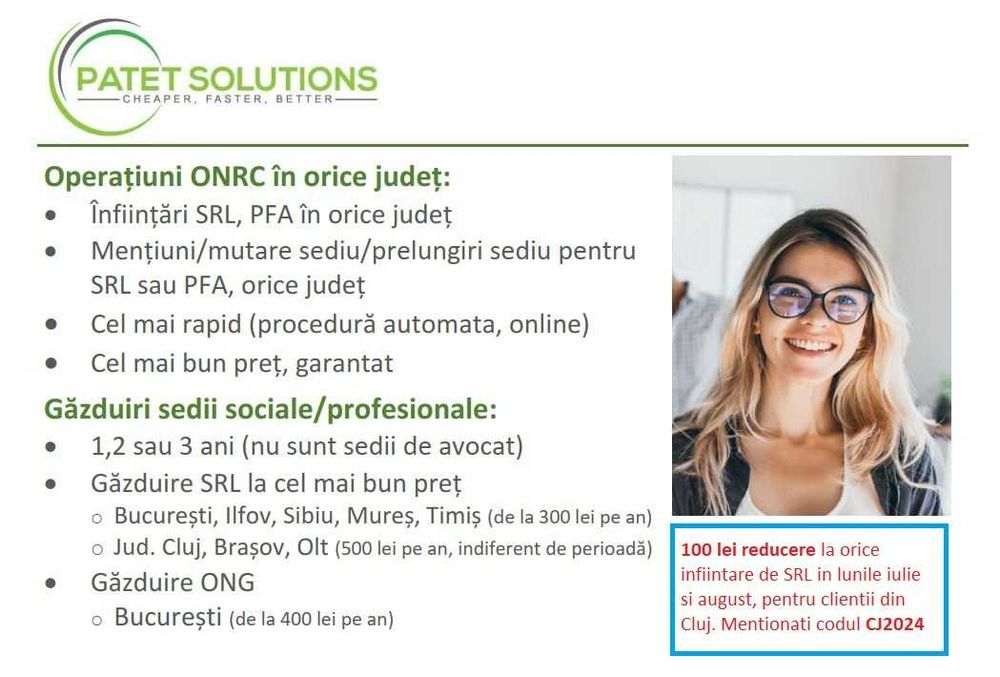 Infiintari firme - Infiintare firma SRL/PFA - GAZDUIRE SEDIU SOCIAL