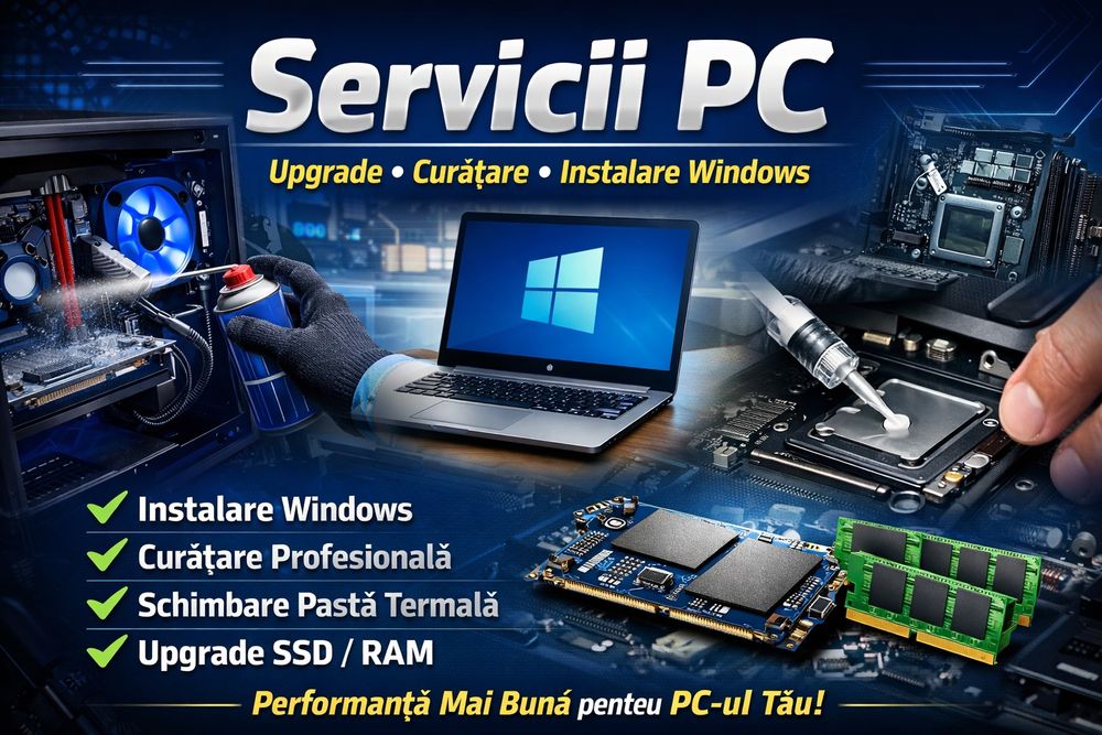 Servicii PC; Upgrade; Curățare; Instalare Windows