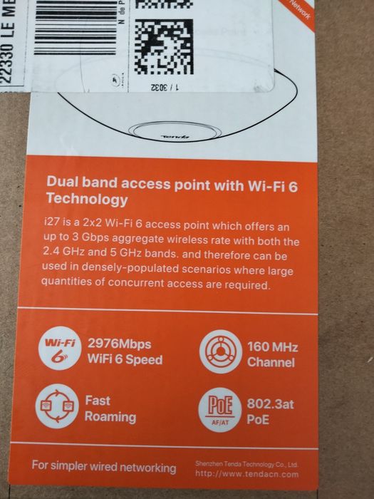 Tenda i27 AX3000 Wi-Fi 6, Access Point profesional, PoE, ideal birouri
