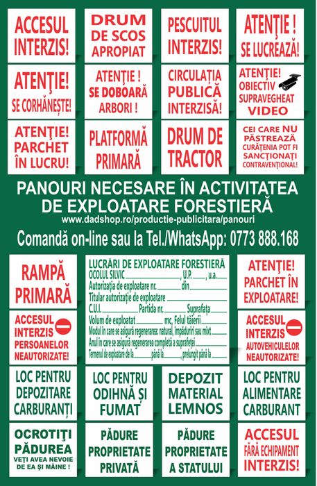 Panouri necesare în activitatea de exploatare forestieră