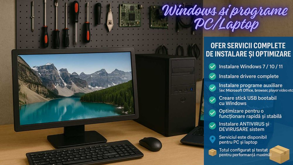 Instalare Windows, Router Wi-Fi, Imprimanta rețea, Office, Antivirus..