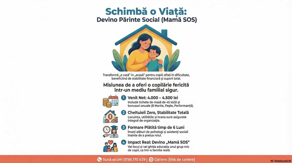 Devino Părinte Social Mamă SOS Salariu 4000-4500 lei NET + Beneficii
